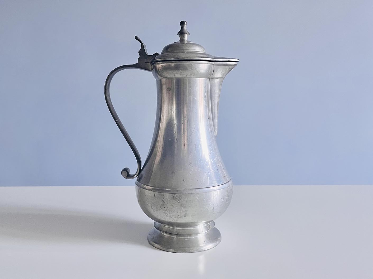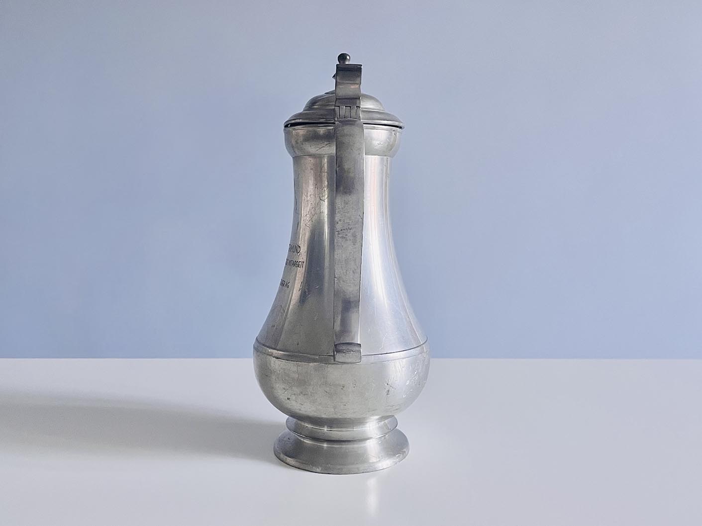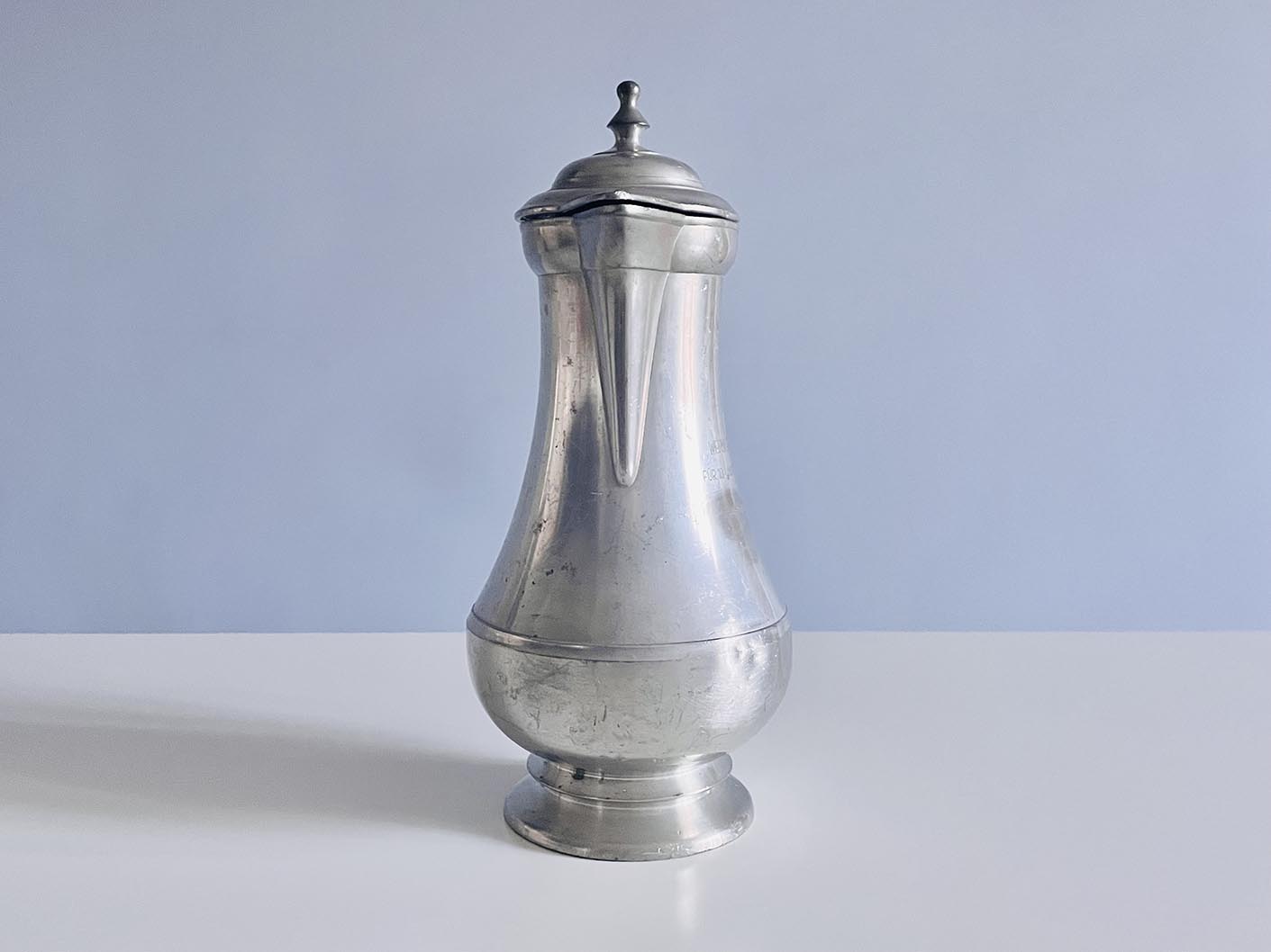 Barokk formájú, nagy méretű ón kancsó, boroskancsó