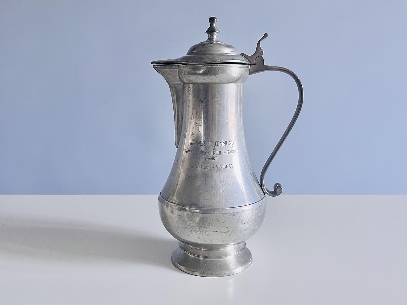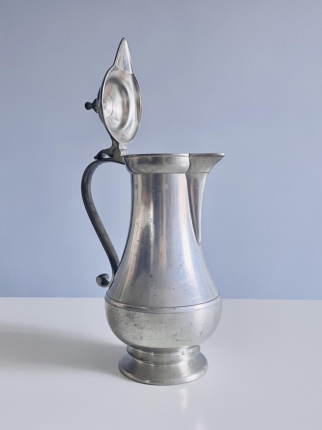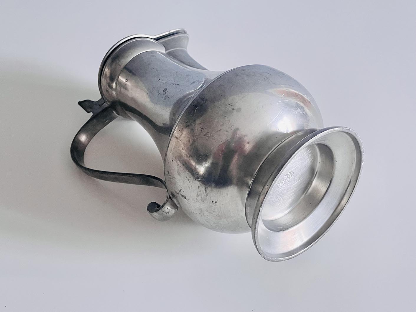 Barokk formájú, nagy méretű ón kancsó, boroskancsó